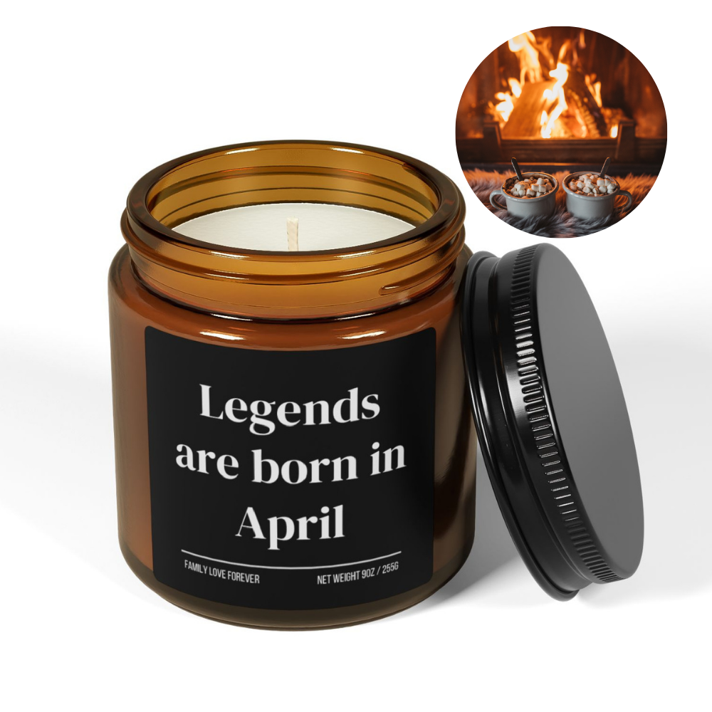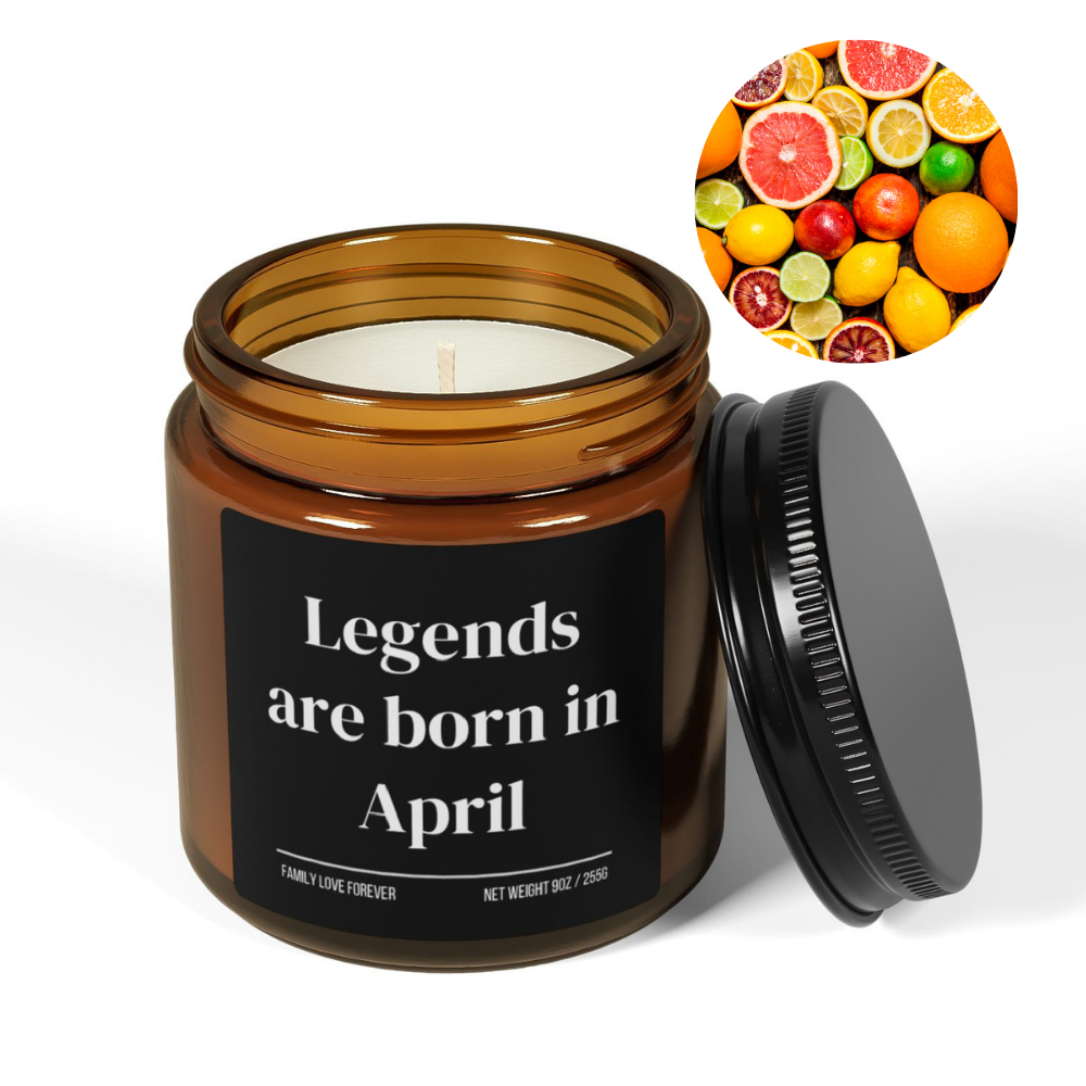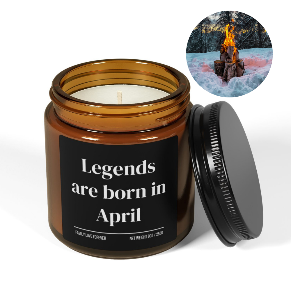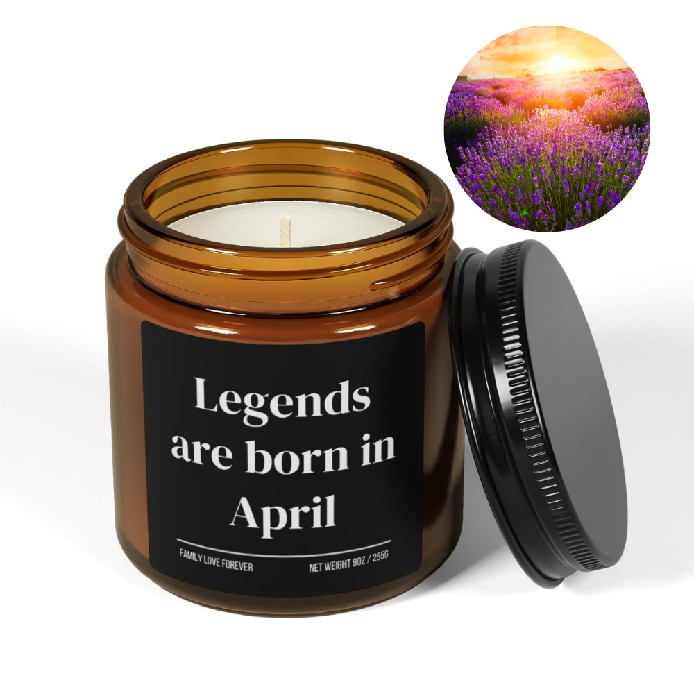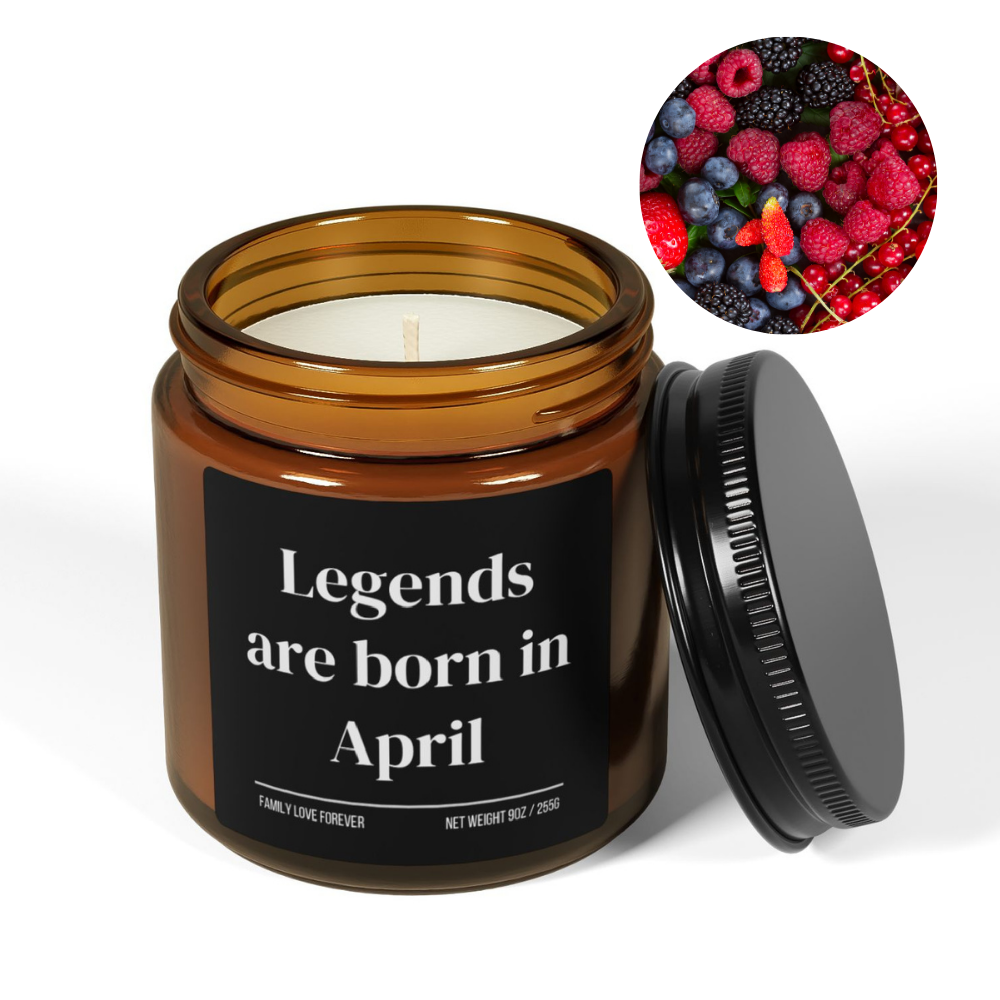 Legends Are Born in April Candle — Birthday Gift for April Born, Hand-Poured Soy Wax