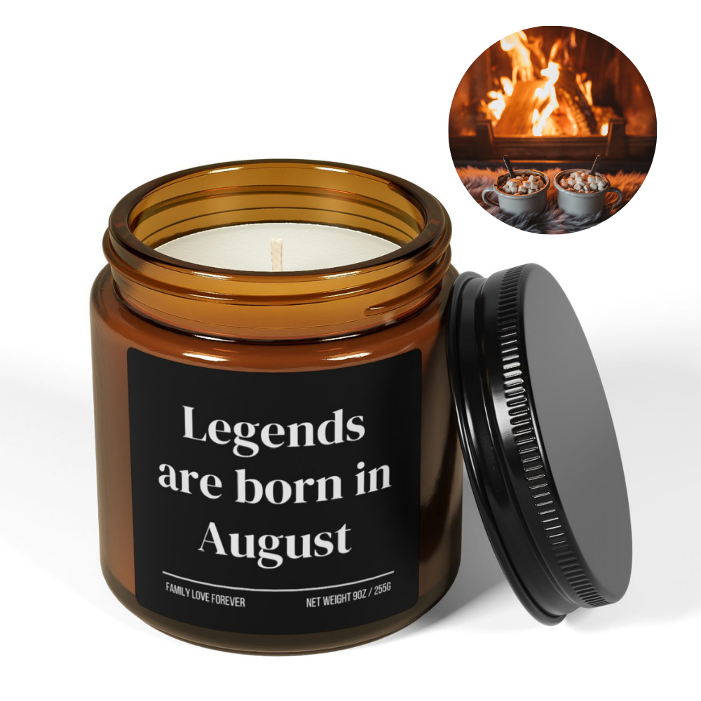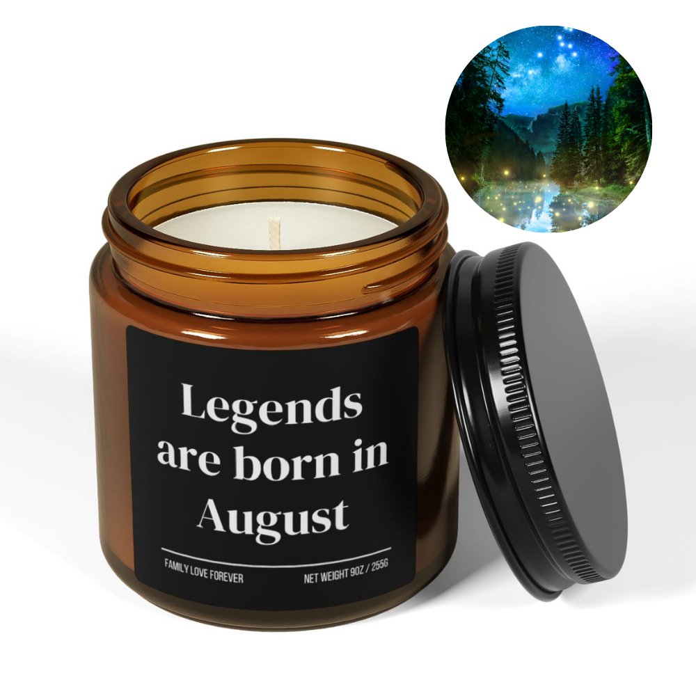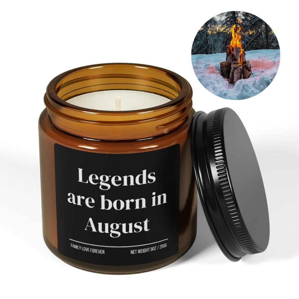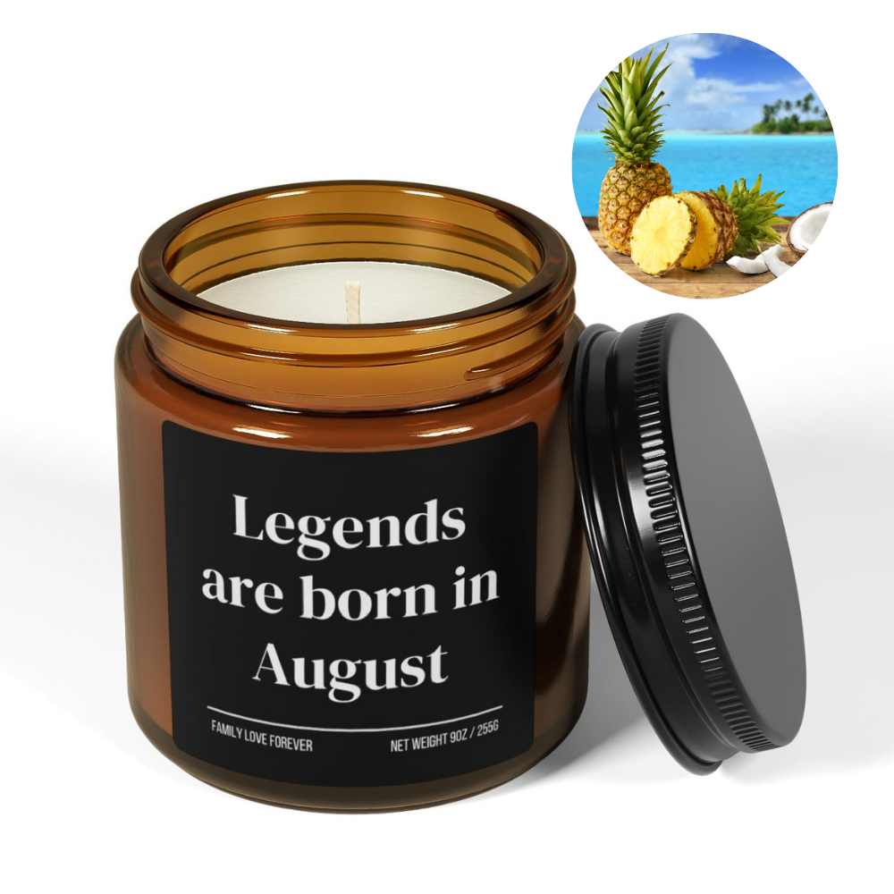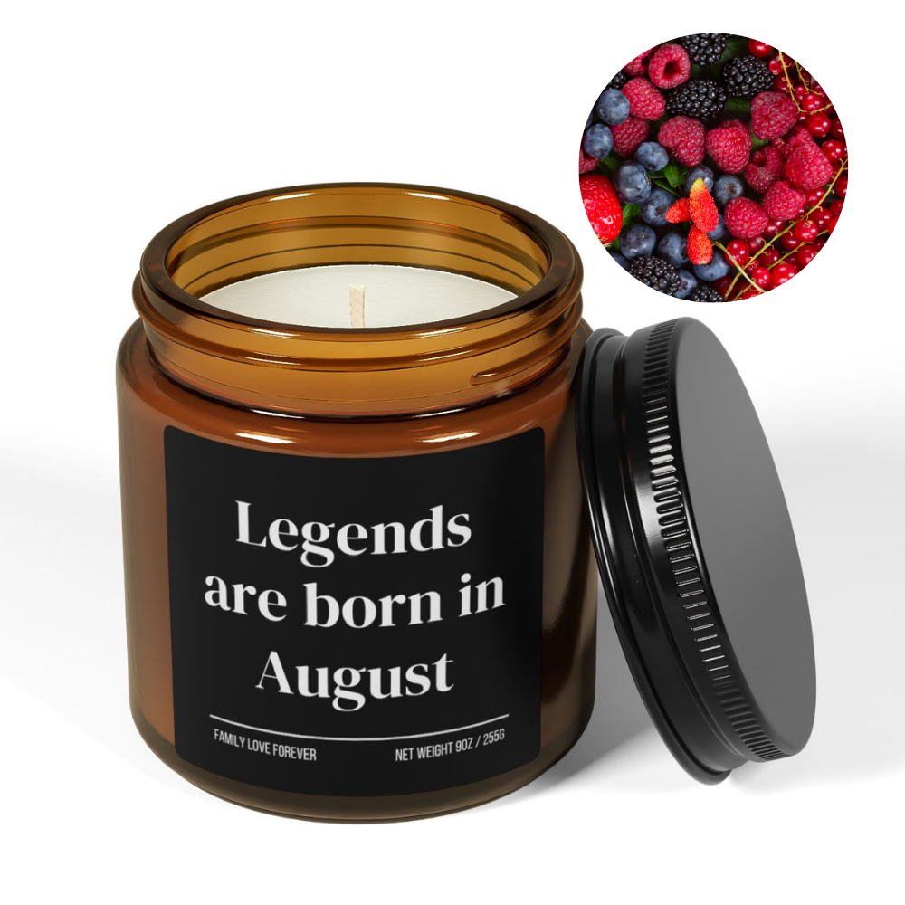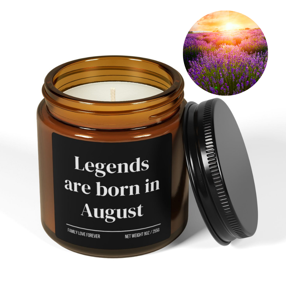 Legends Are Born in August Candle — Birthday Gift for August-Born, Hand-Poured Soy Wax