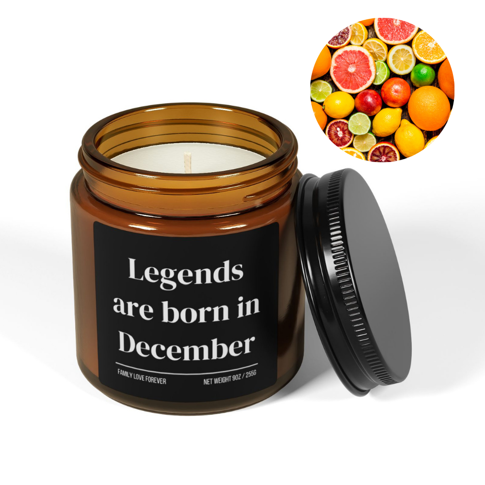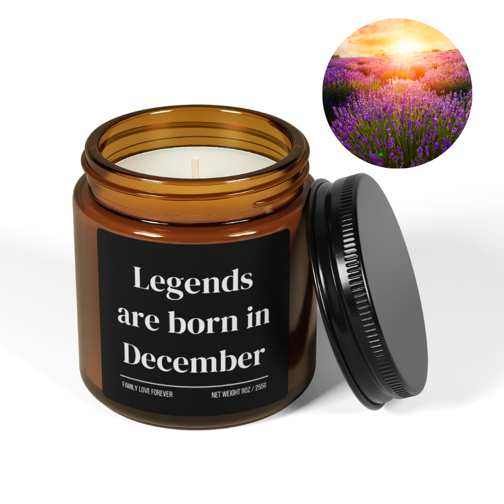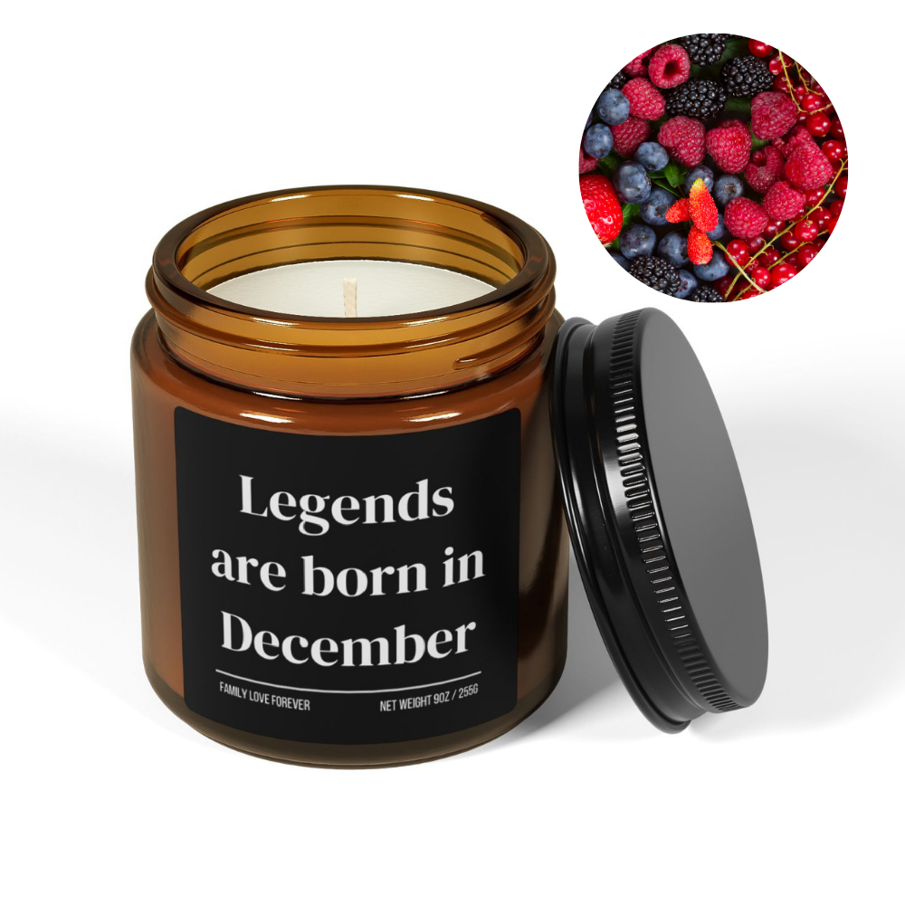 Legends Are Born in December Candle — December Birthday Gift, Hand-Poured Soy Wax
