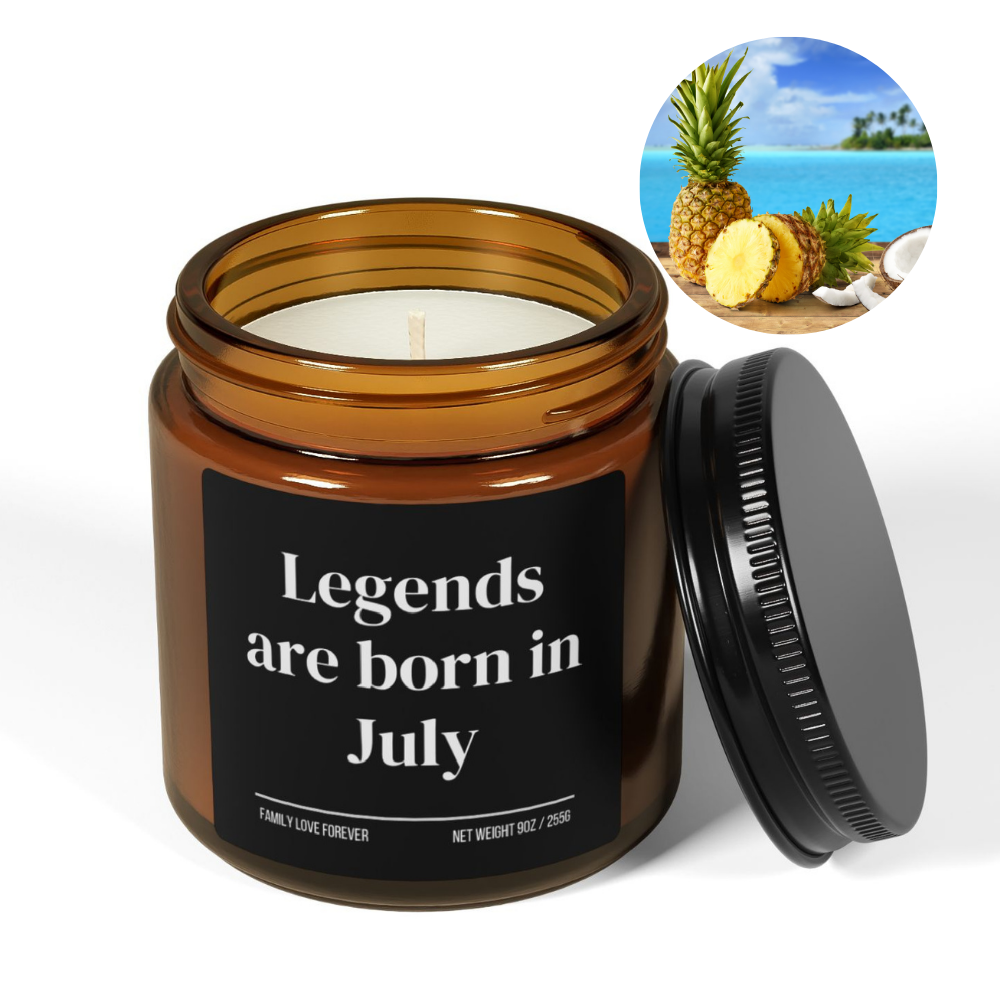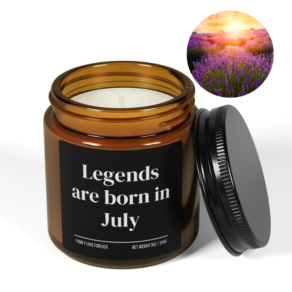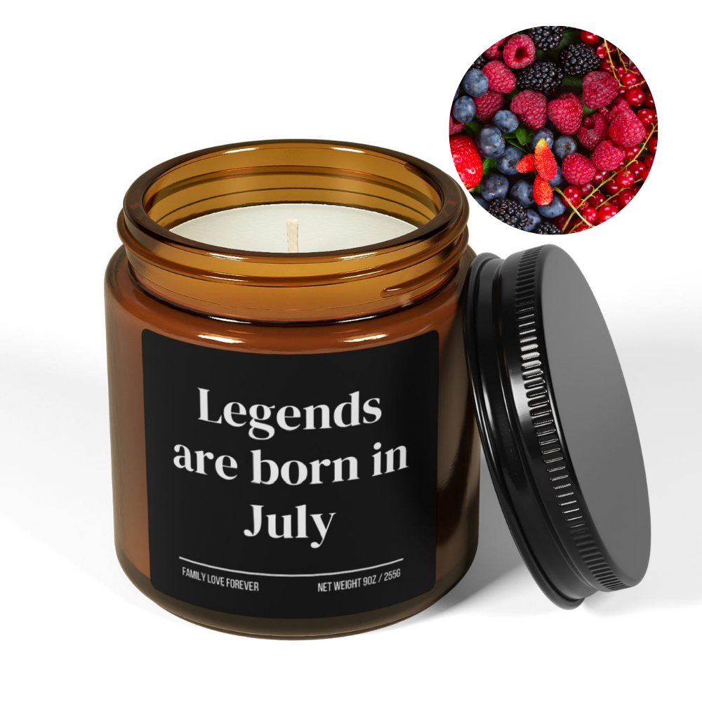 Legends Are Born in July Candle — Birthday Gift for July-Born, Hand-Poured Soy Wax