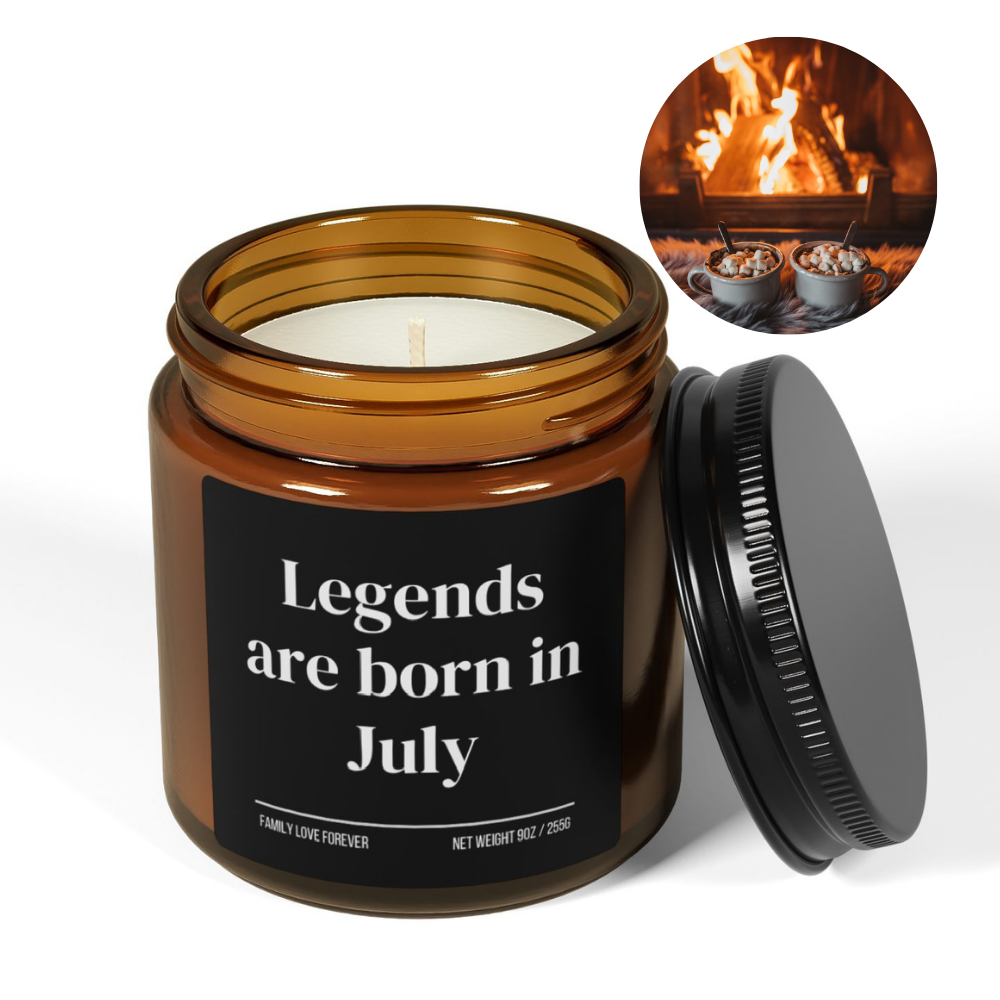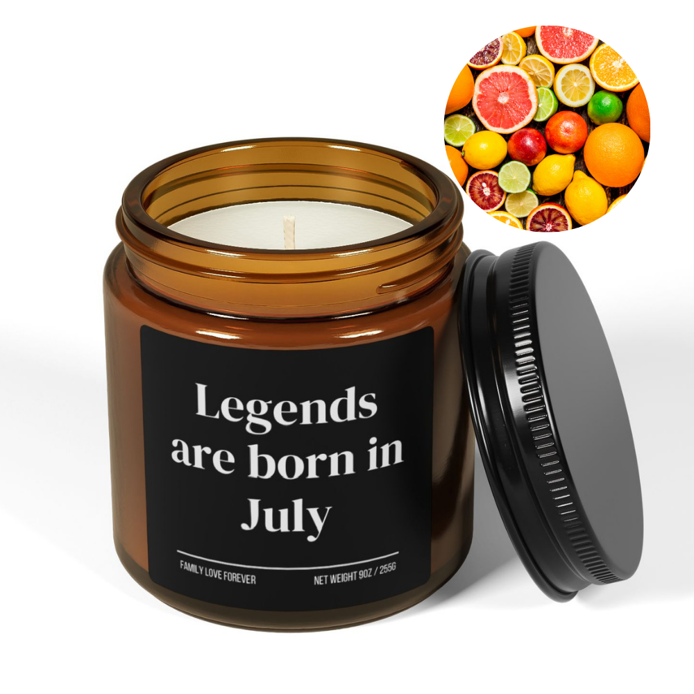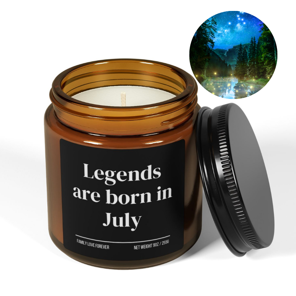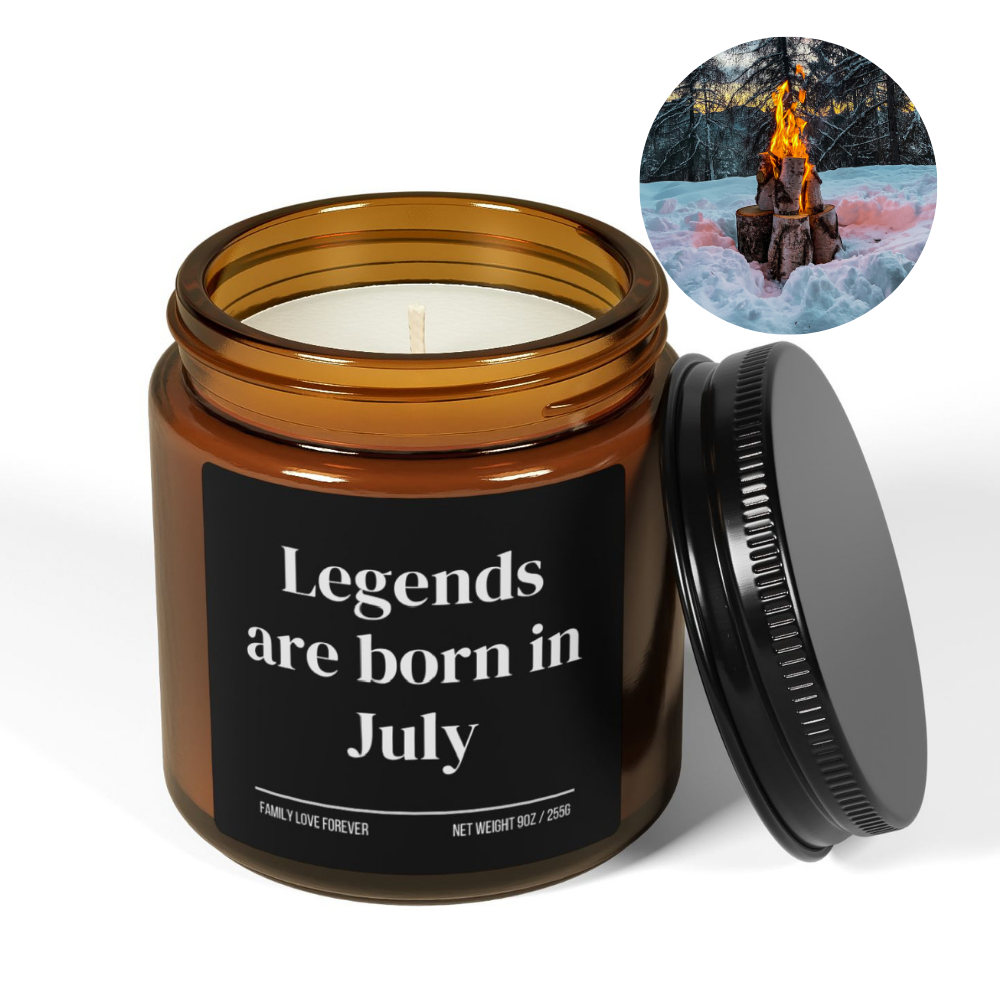Legends Are Born in July Candle — Birthday Gift for July-Born, Hand-Poured Soy Wax