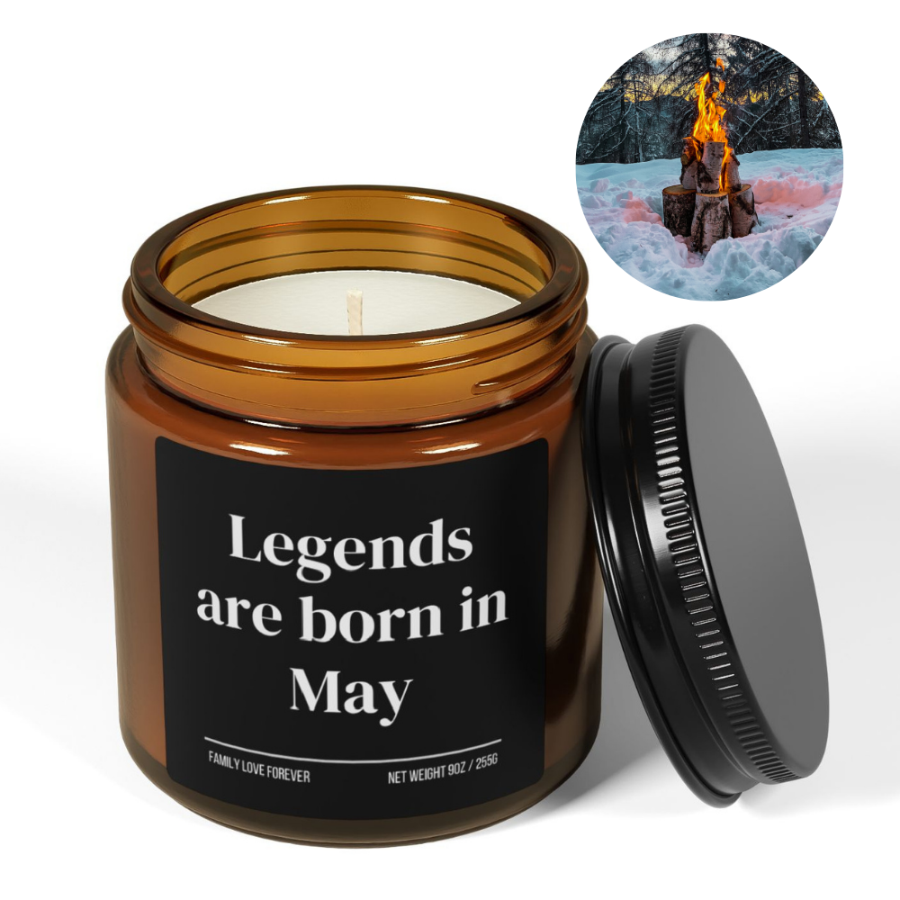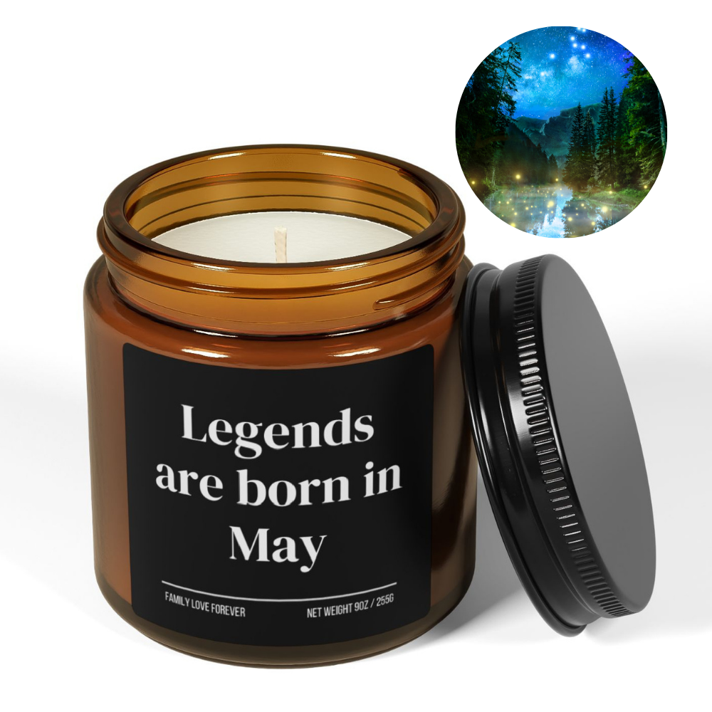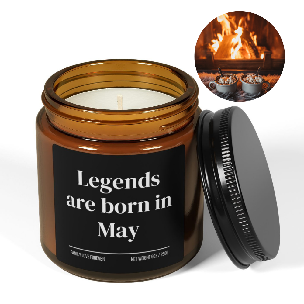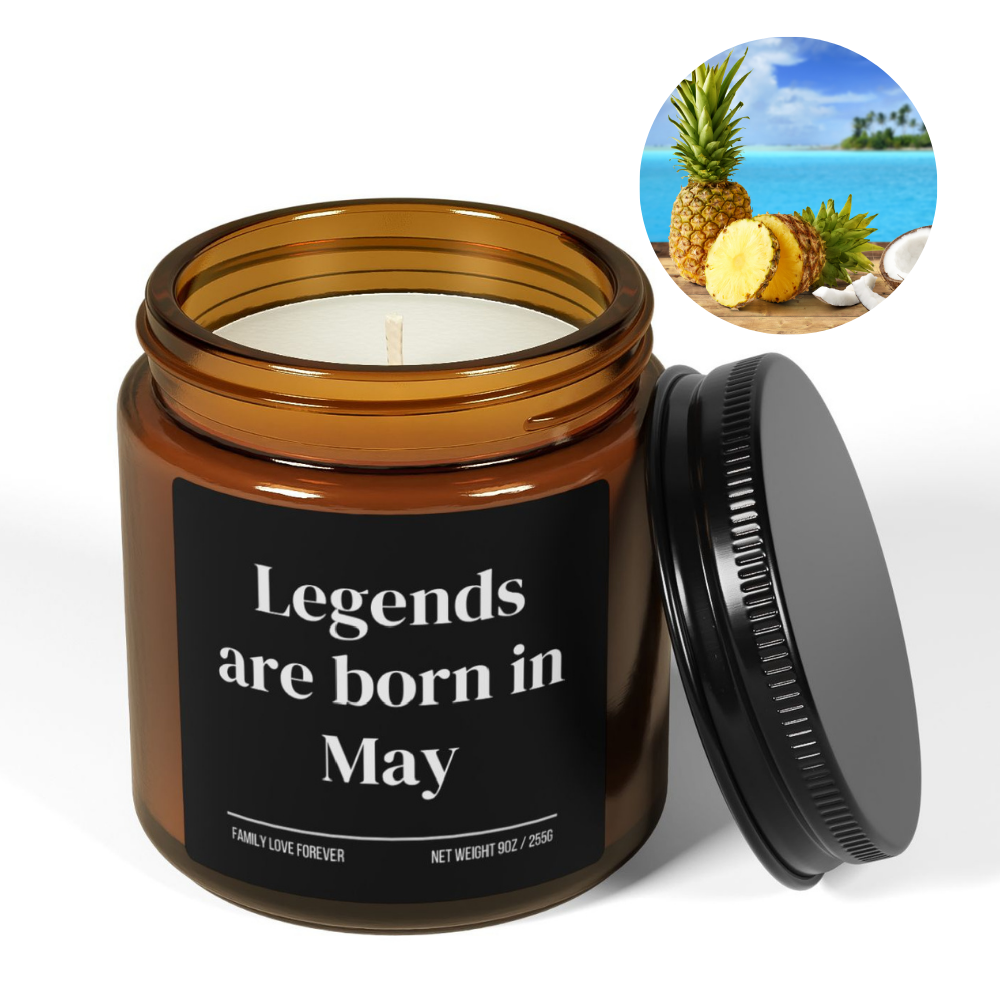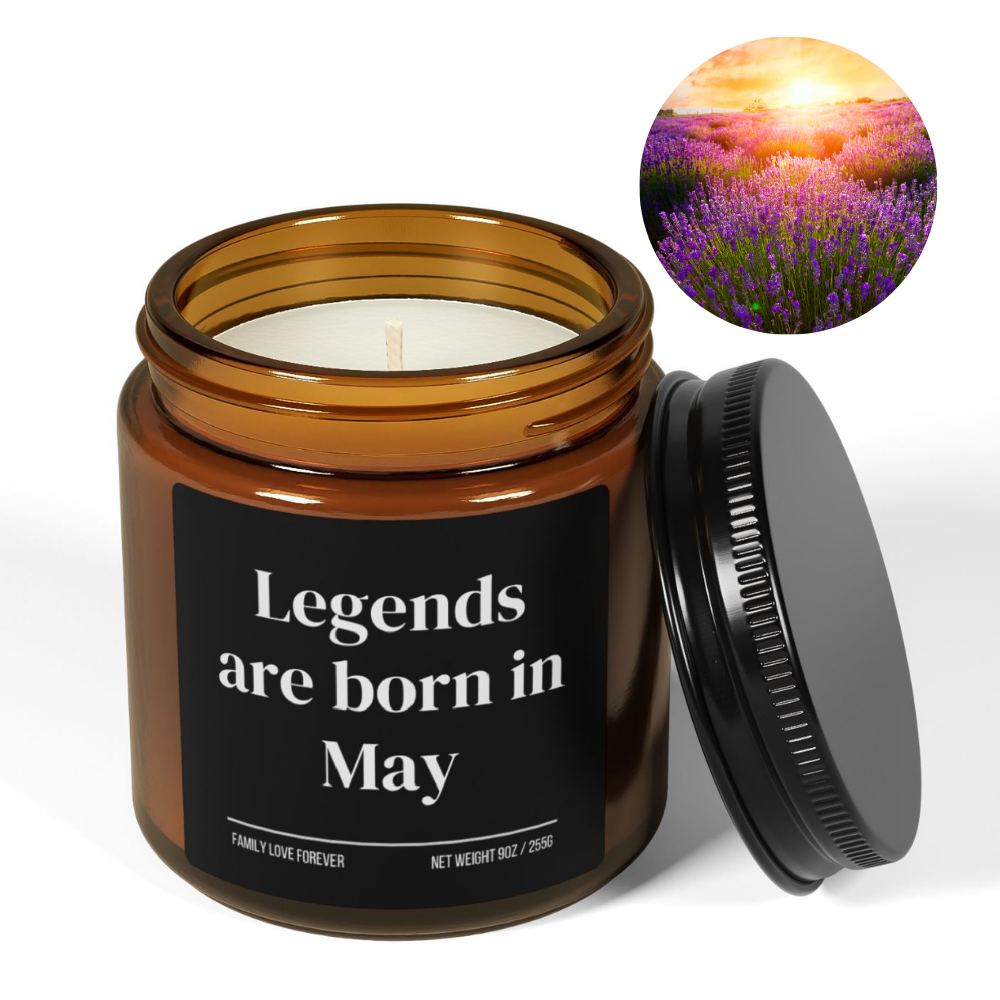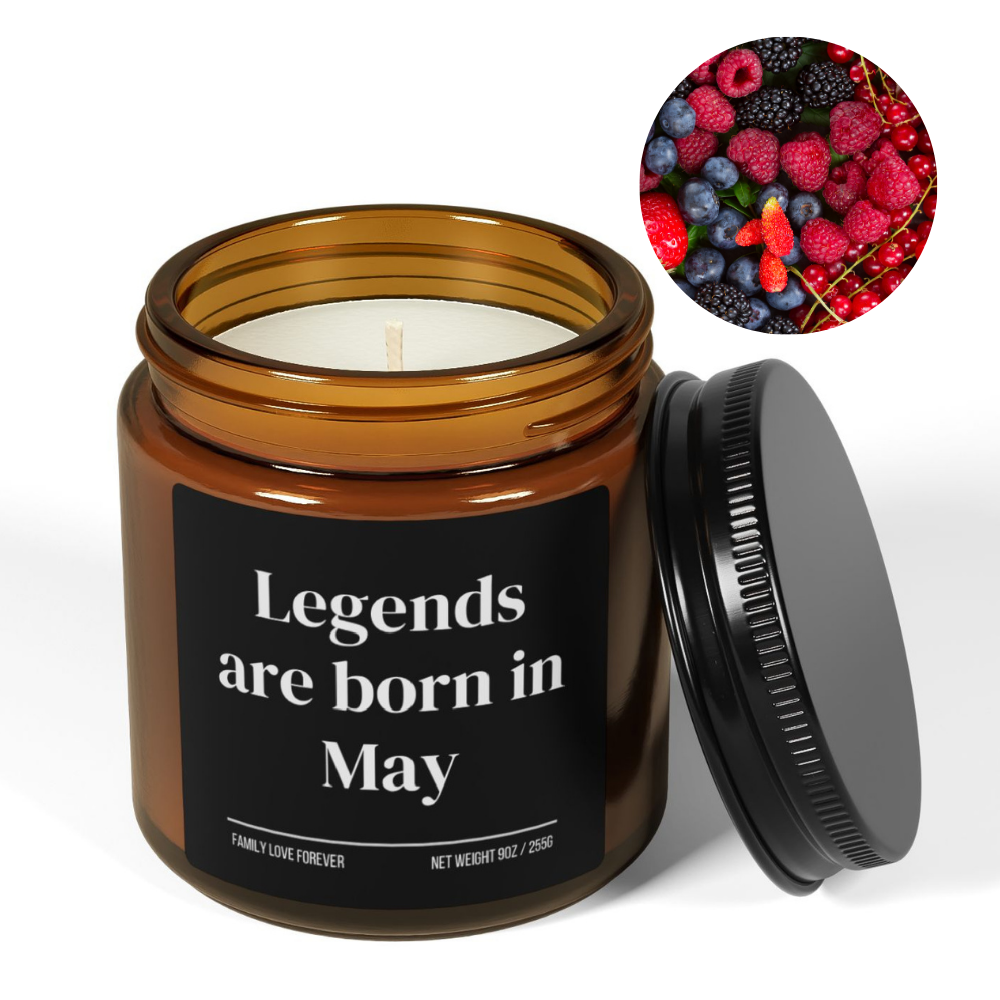 Legends Are Born in May Candle — Birthday Gift for May Born, Hand-Poured Soy Wax