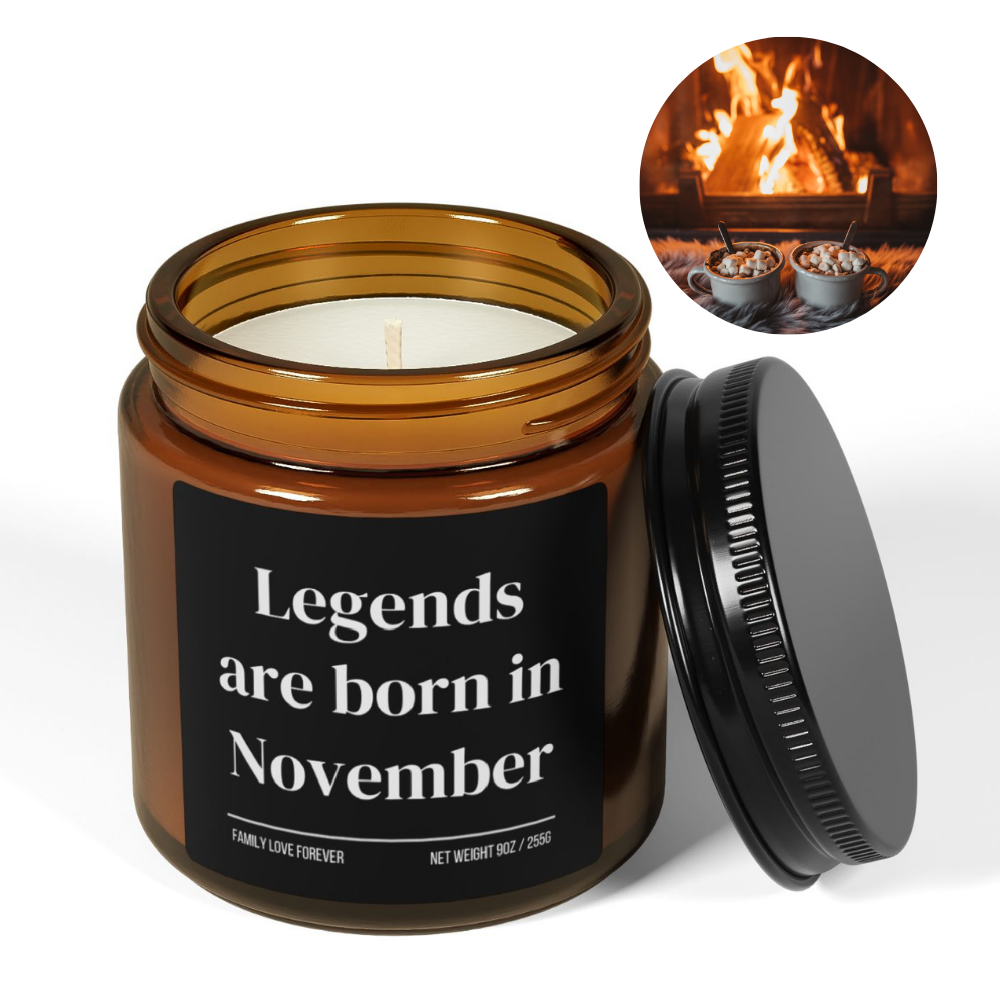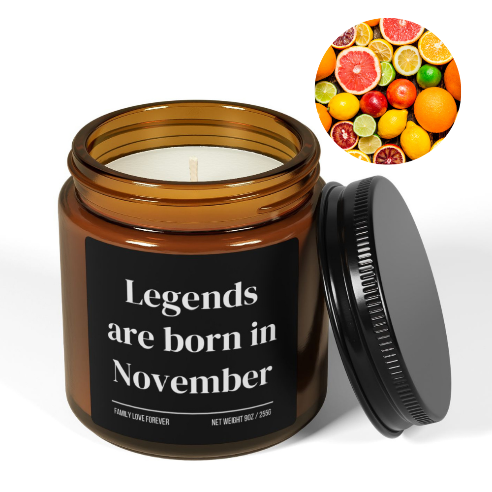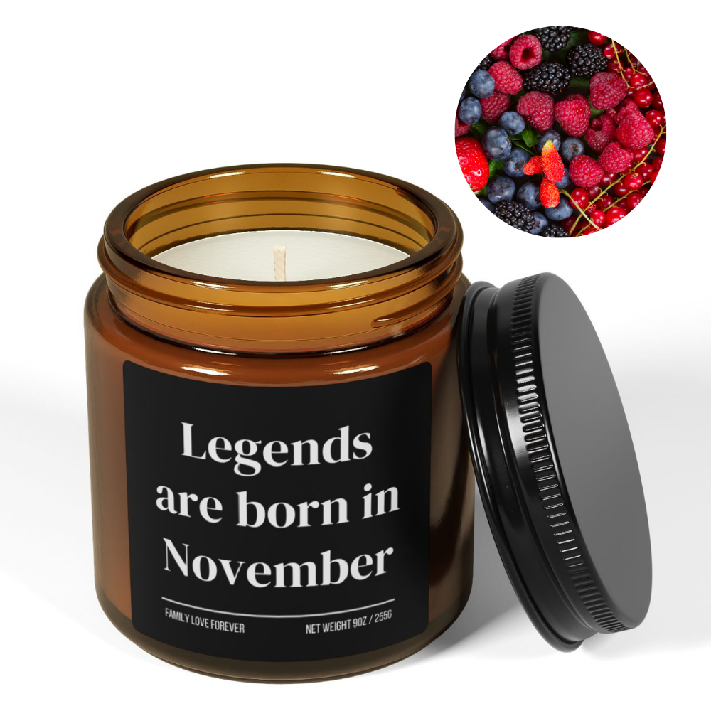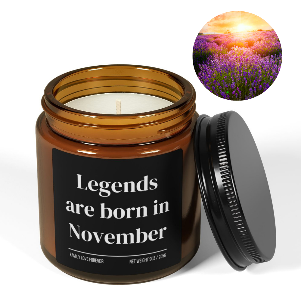 Legends Are Born in November Candle — Birthday Gift for November-Born, Hand-Poured Soy Wax