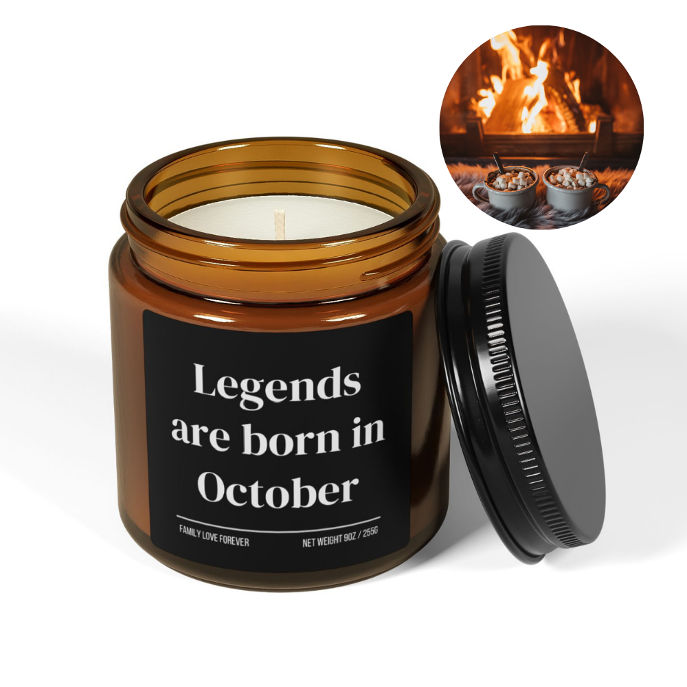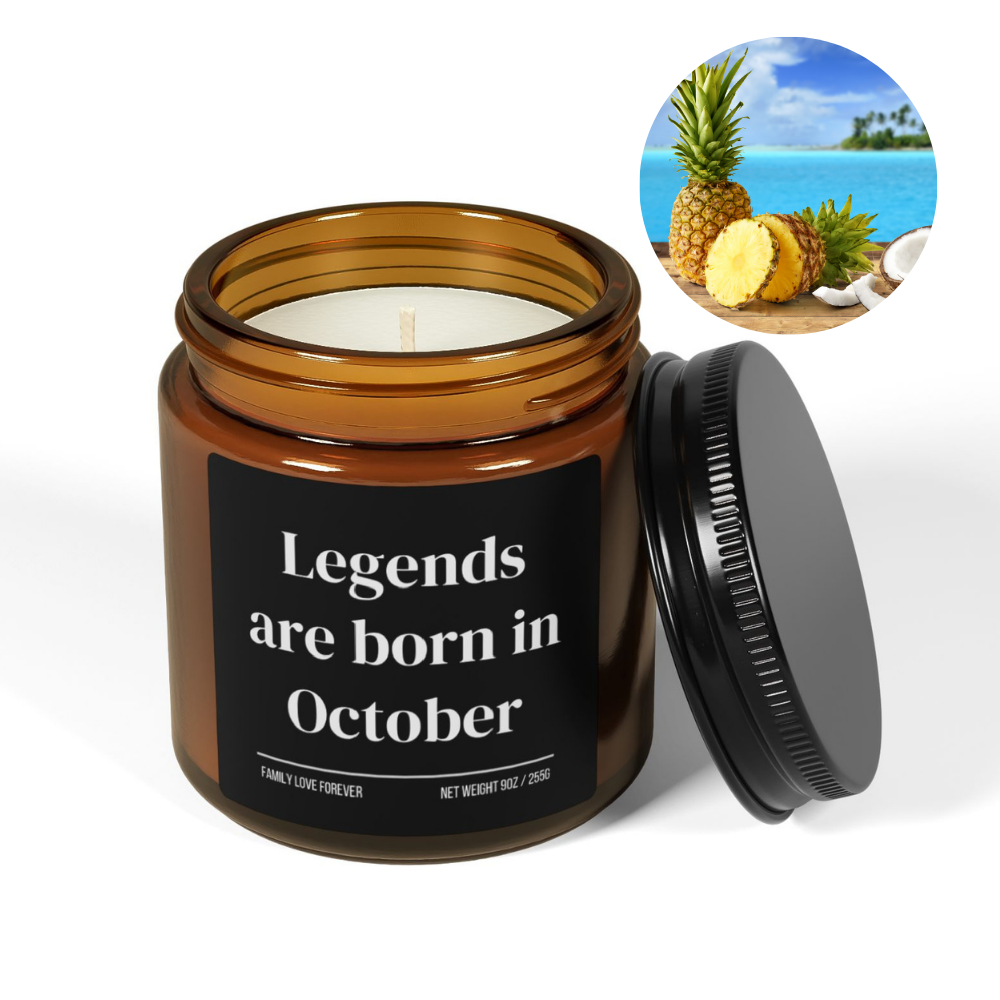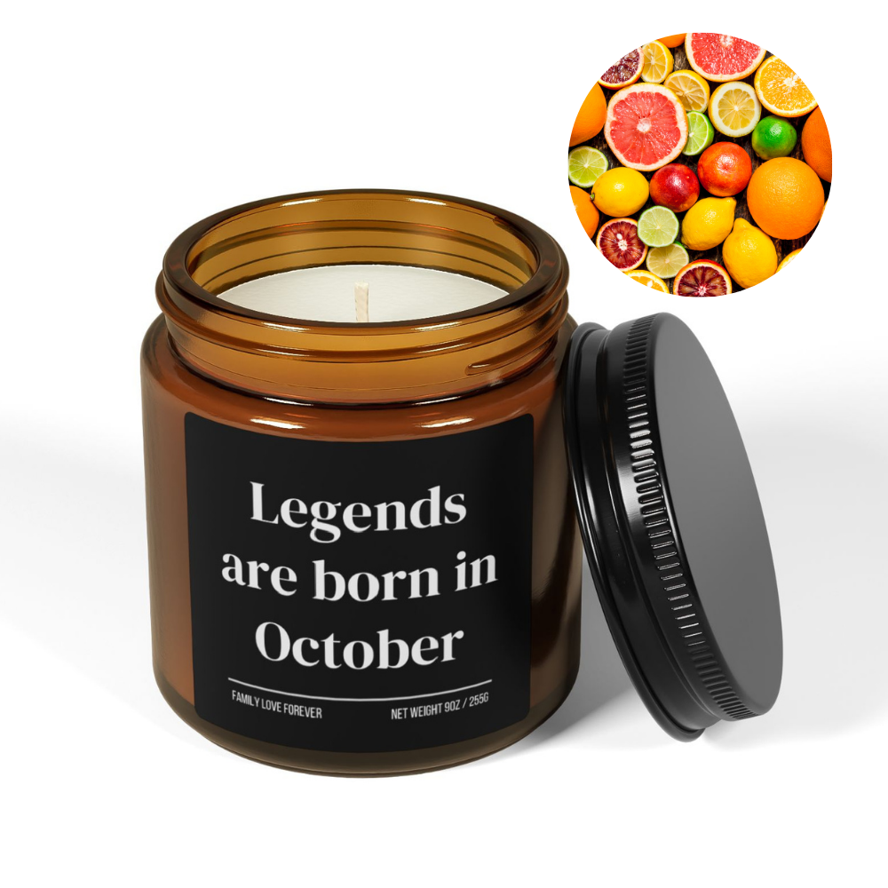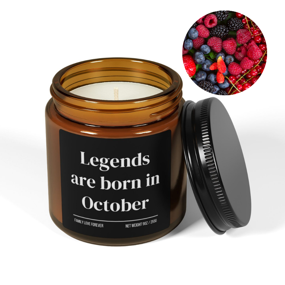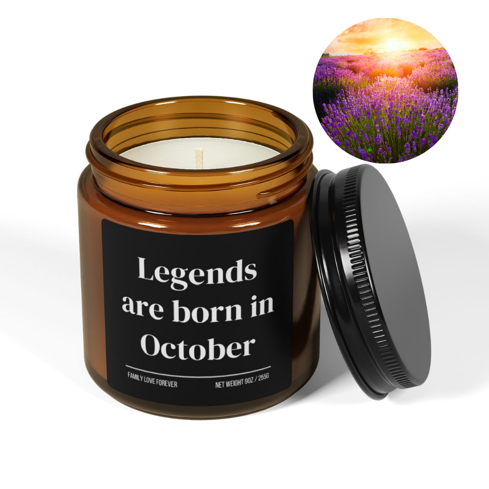 Legends Are Born in October Candle — Birthday Gift for October-Born, Hand-Poured Soy Wax